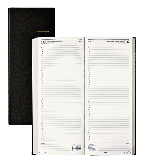 Brepols Saturnus agenda with 1 day per 2 pages. Size: 128 x 330mm. Available while supplies last.
