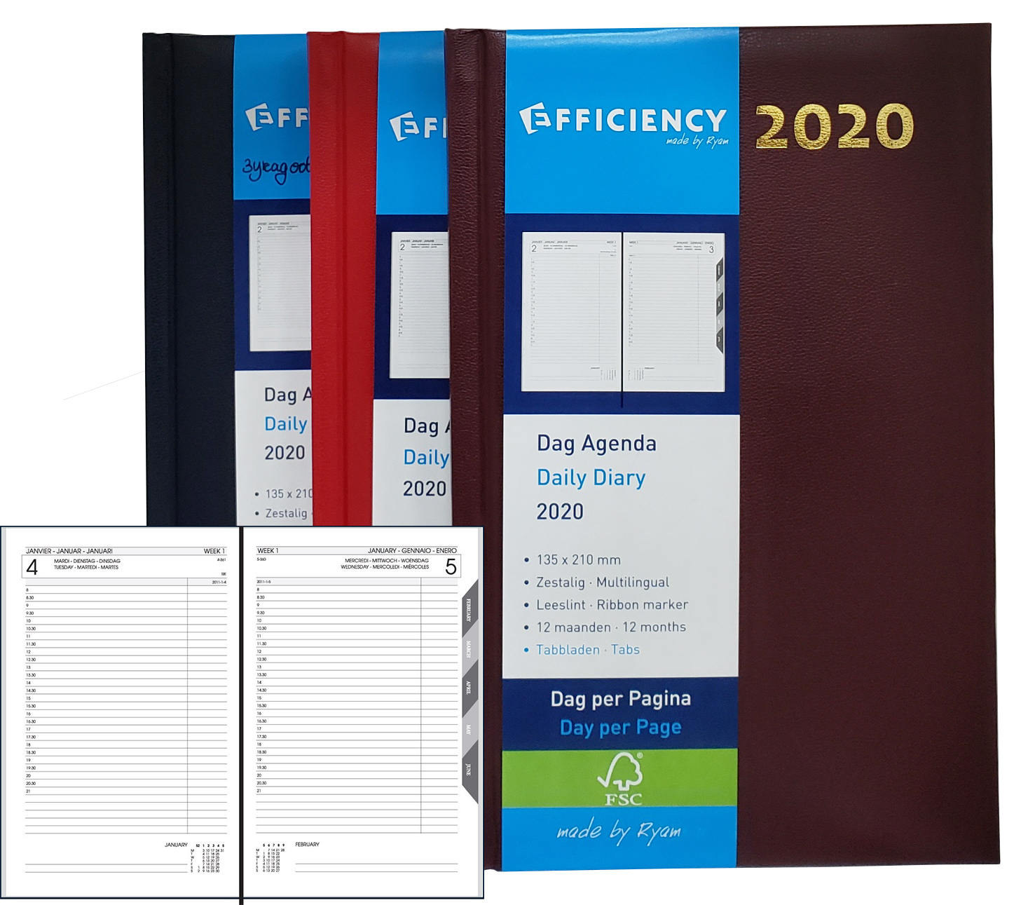 Ryam Efficiency, short version with tabs and 1 day per page. Size: 135 x 210mm. Available while supplies last.