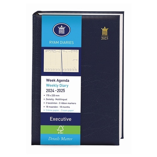 Ryam Executive agenda, short version with 7 days on 2 pages. Size: 170 x 220mm. Six languages. Available while supplies last.