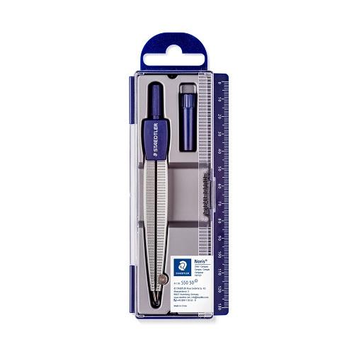 Precision compass for the first circle-drawing exercises at school. Max. circle Ø approx. 300mm. Length 124mm.